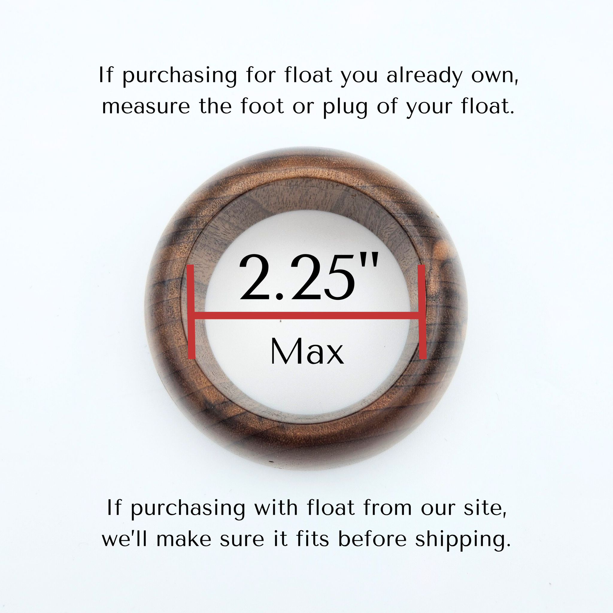 • 2.25" round opening – fits floats with small foot or plug. We recommend measuring yours.