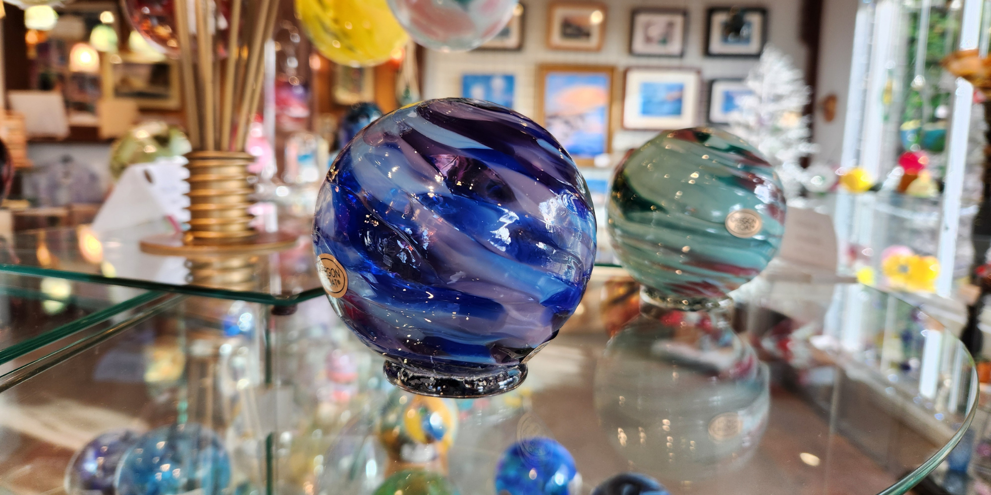 Every float and ornament is hand-blown right here in our studio by Amanda. From shaping the glass to cooling and careful wrapping, each piece takes time. Please allow up to five business days for your order to be made.